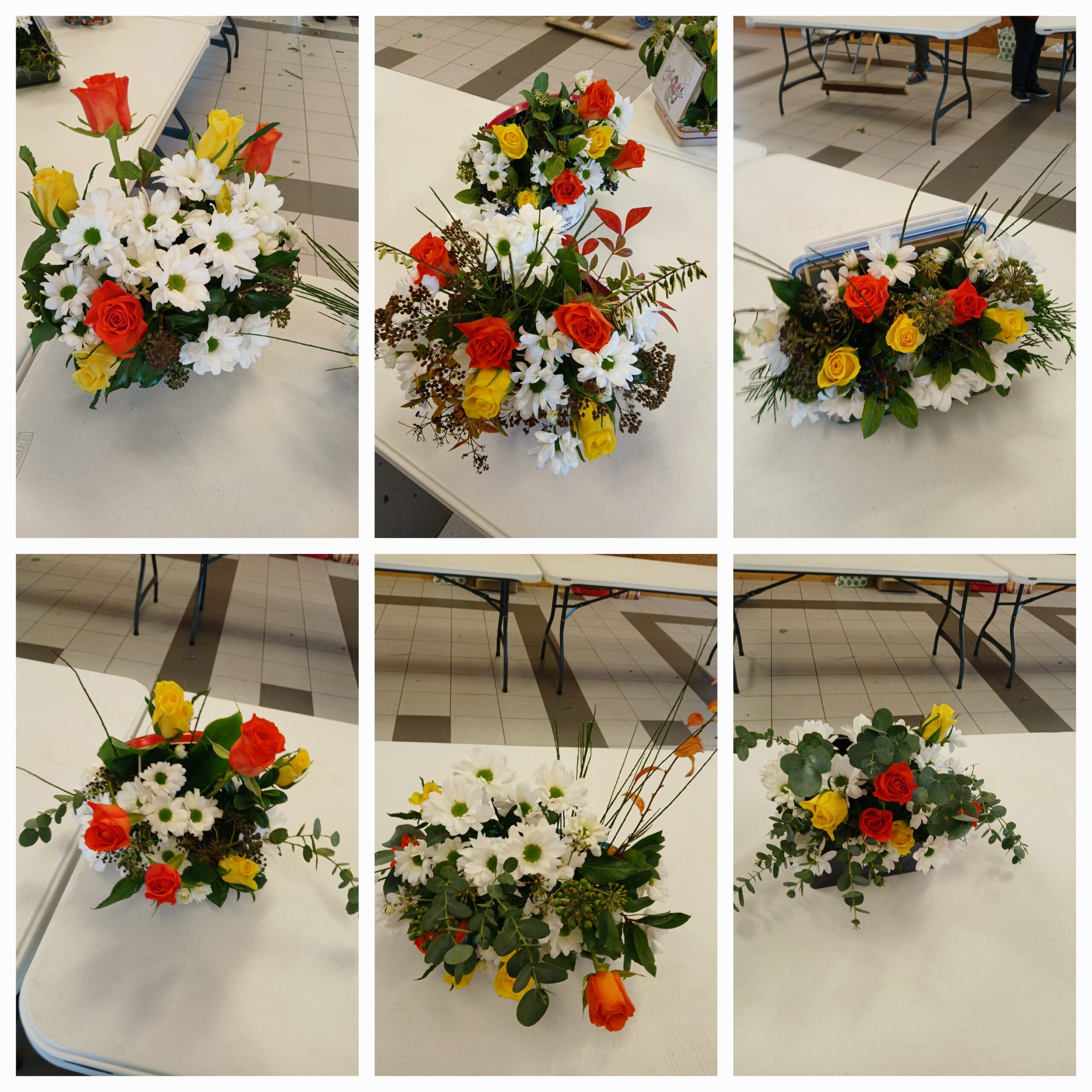 De très jolies compositions réalisées dans des boîtes à gâteaux ou à bonbons. Le plus long n’a pas été la confection du bouquet mais de manger les ce qu’il y avait dans les boîtes.