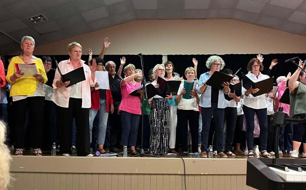 Les trois chorales se sont ensuite retrouvées à la salle polyvalente de St Ybard pour un nouveau tour de chant, toujours sous la baguette de Julien Proulhac.